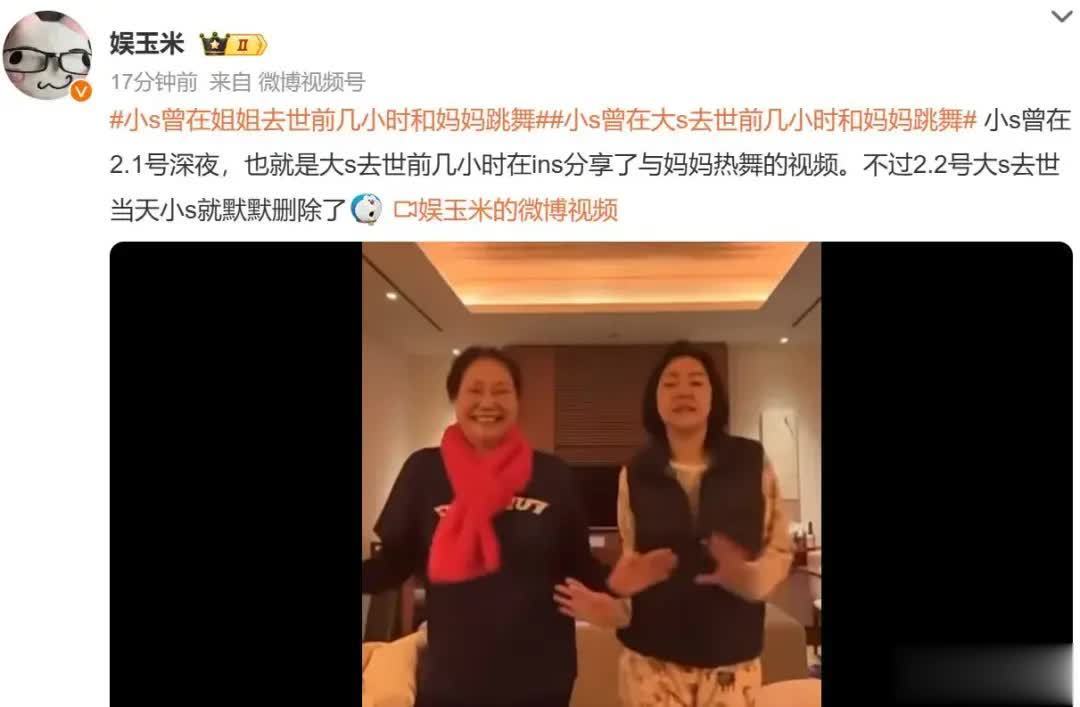 她在病情严重被救护车第一次拉走后,小S还晒出跟妈妈在酒店跳舞的视频,说明当时全家都没有太在意她,估计都以为是小感冒引发了呼吸困难,哪里会想到已经严重到肺炎了。